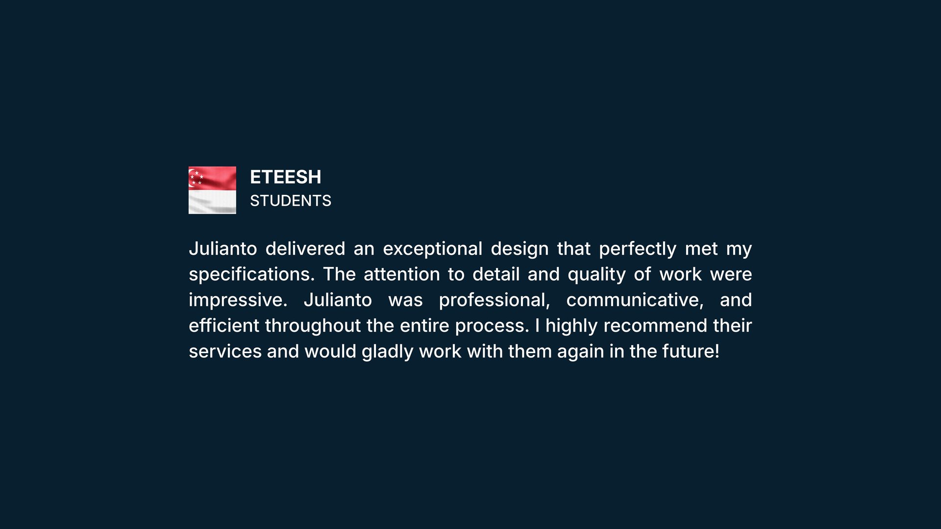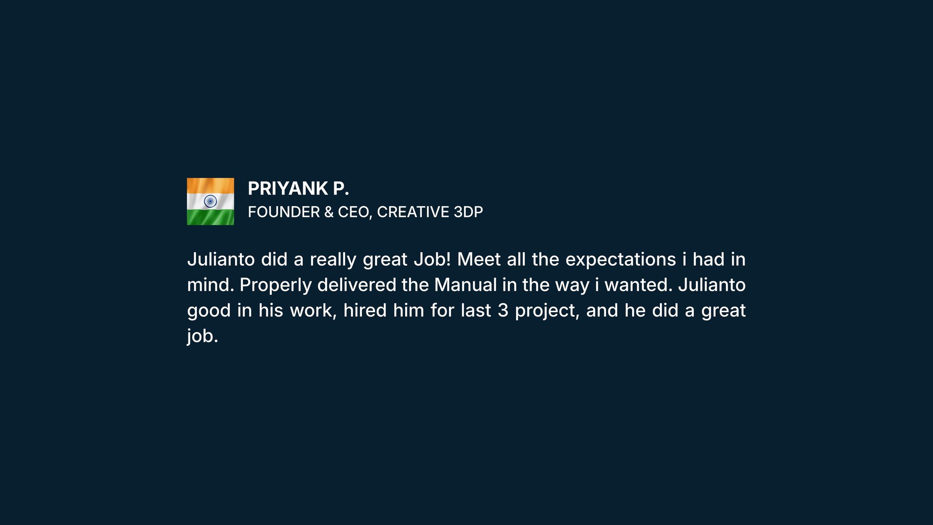 I collaborate with all kinds of clients-established companies, early-stage startups, and solo entrepreneurs. I adapt my approach based on the project's needs and available resources